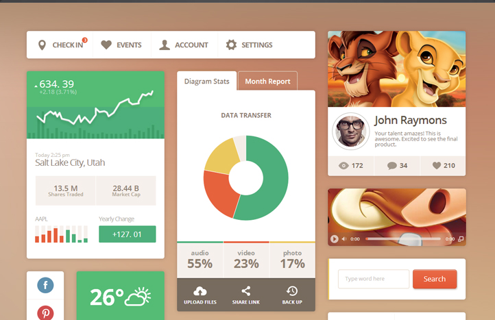 Que tal se espelhar e ver como os profissionais front end estão desenvolvendo suas telas, levando em consideração “usabilidade e IHC”. Achamos uma coisa que pode ajudar você a saber como esses profissionais trabalham. A Pixelkit disponibilizou no GitHub alguns modelos interessantes, confira abaixo alguns exemplos que você poderá encontrar no GitHub.